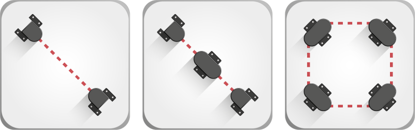 Tour simple ou Double face dépendra de la configuration des zones. Imaginez que notre périmètre ne soit qu'une seule zone (les 2 points sur un dé), alors tout ce dont nous avons besoin est de 2 tours à un seul côté (TAS), s'il s'agissait de 2 zones (les 3 points sur un dé), vous voudriez utiliser un seul côté tours (TAS) à chaque extrémité, et une tour double face (TAD) au milieu. Un périmètre continu (les 4 points sur un dé) utiliserait 4 tours TAD.