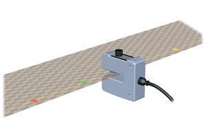 The U-shaped sensor detects register marks on wrapping paper with no need to adjust optical axes.