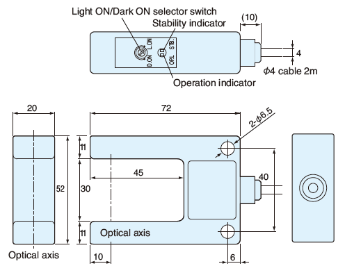 | Model | Detecting distance | Power supply | Output mode | Connection | Protective structure | |