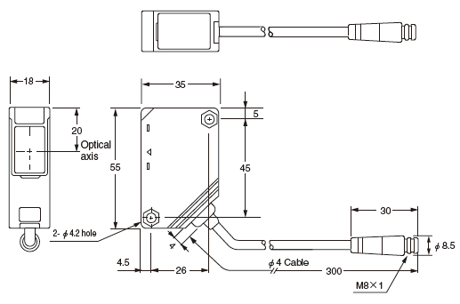 • Polarization filter (separately available) for adjacent mounting of two units (through beam type NE-T10RD-DC)