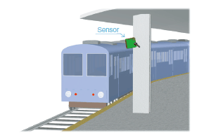 Detecting a train approaching the station and activating an alert announcement and video monitors.
