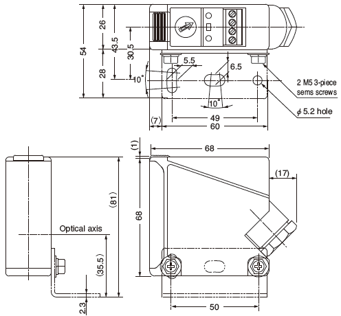 | DL-S100TC | 0.2 - 1m | 12 - 24V DC | NPN/PNP | Terminals | IP65 | |