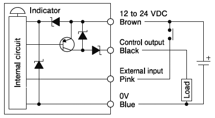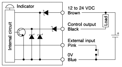 * When not using the external input, connect the external input cable (pink) to 12 to 24 VDC in NPN mode and to 0V in PNP mode.