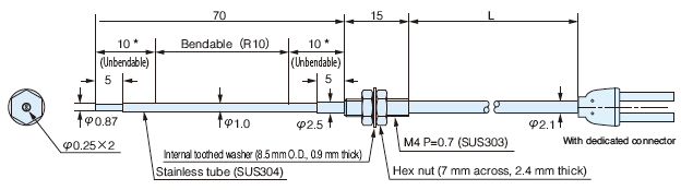 M4 threaded φ0.87 head with 70 mm SUS tube (SUS part bendable)
