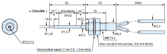 M6 threaded with 35 mm SUS tube (SUS part bendable)