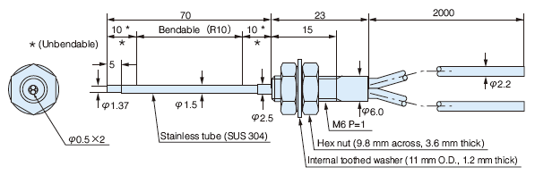 M6 threaded with 70 mm SUS tube (SUS part bendable)