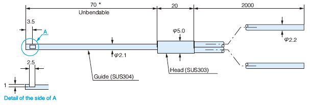φ2.1 head, 70 mm SUS tube with φ5 cylindrical unit