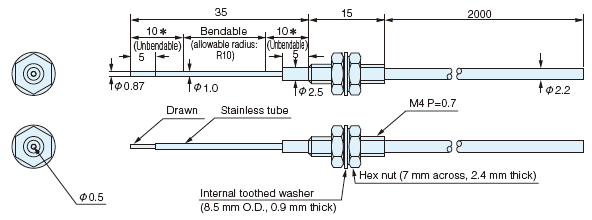 M4 threaded with 35 mm SUS tube (SUS part bendable)