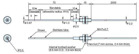 M4 threaded with 70 mm SUS tube (SUS part bendable)