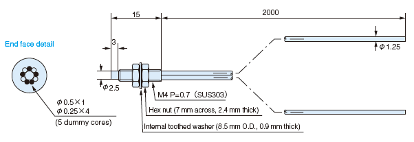 M4 threaded, φ2.5mm coaxial with 1 transmitting and 4 receiving fibers
