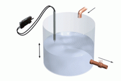 A fiber optic fiber cable coated with chemical-resistant PFA can be placed in a fluid tank, to enable detection of the liquid surface level.