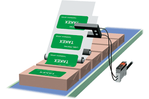 Integrated U-shaped fiber optic cable available for detecting labels for timing operation of labeler.