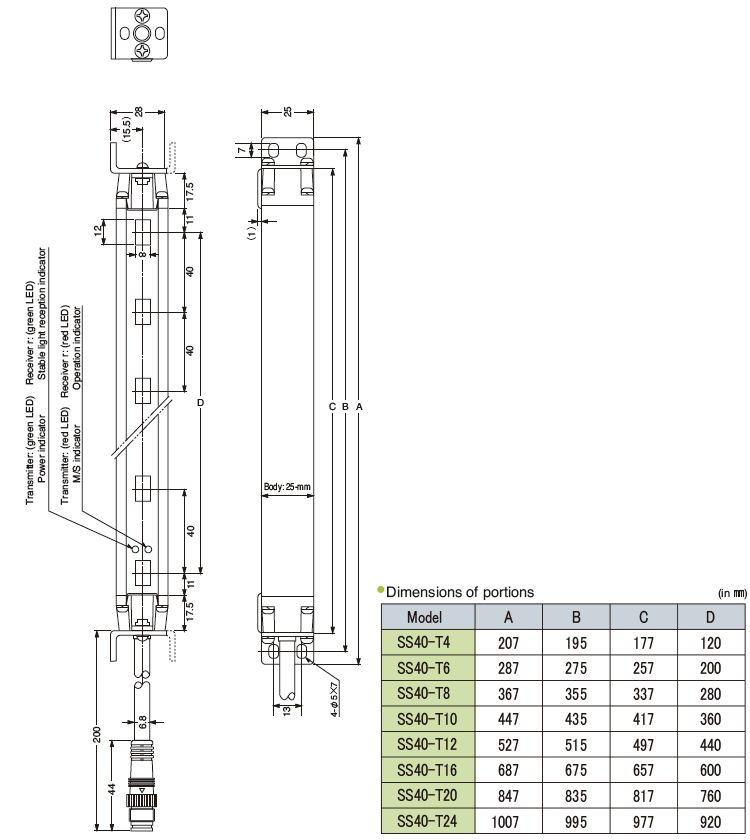 | SS40-T24-PN | 920mm | 40mm | Opaque φ52mm or more | PNP | IP66 |