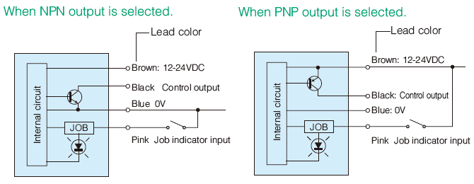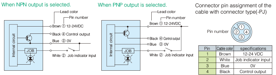 On the side of the body, there are two large-sized, high intensity green LED Job indicators which are easy to see. - NPN/PNP dual output