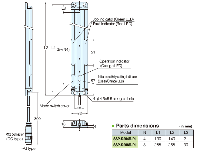 You can select either NPN or PNP output with an inner switch of the sensor, which will contribute to reducing your stock of sensors. - Fault indicator
