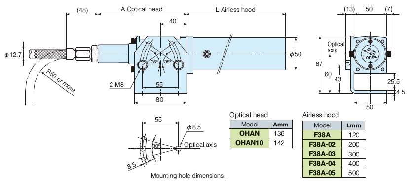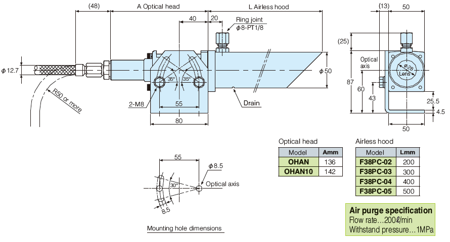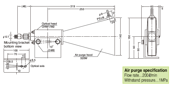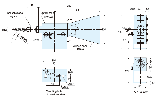This photo sensor is a fiber radiation photo sensor (HMD) which can directly detect infrared energy radiated from heated materials such as heated steel.