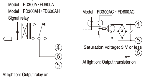 | FD300AH | Signal relay output | Light ON Rating: 1c 0.5A 48VDC Response time: 5ms |