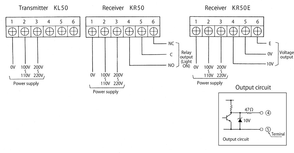 The KL(R)50 Series sensors are through beam type CMDs that output ON-OFF signals by detecting blocking of light by the detected object that passes between the transmitter and receiver.