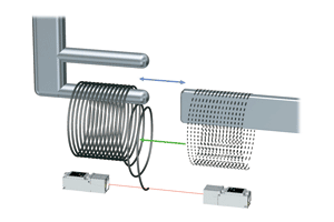 Wire hanging from loose wire rod carried by hook conveyor is detected (sensor used in combination with pinhole plates).