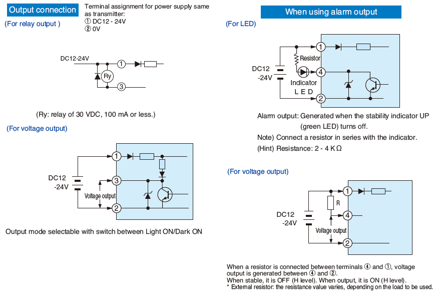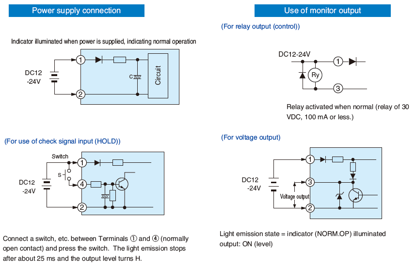 • Receiver provided with "stability alarm output circuit" for monitoring adequate light reception together with indicator and output terminal. Also equipped with monitor output jack for additional reliability in light axis alignment by use of earphone and Light ON/Dark ON selector switch.