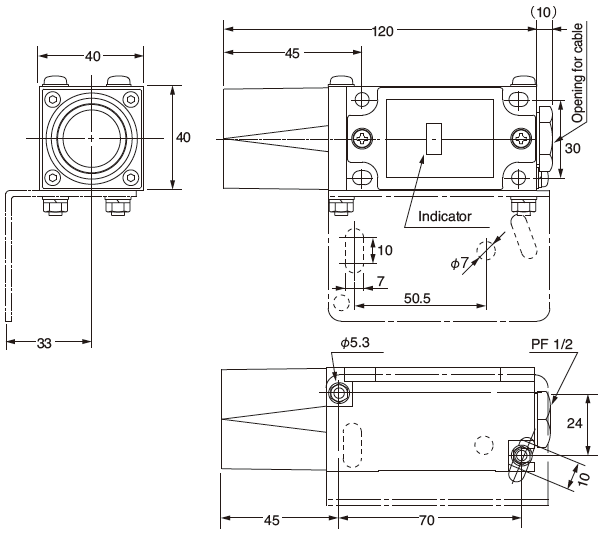 Use 2 M6 bolts for securing the sensor body (separately prepare bolts, nuts, washers, etc.).