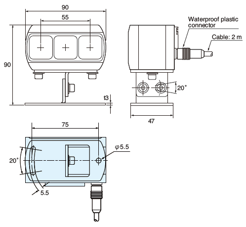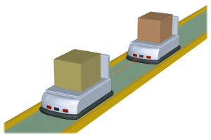 Used for deceleration and stopping control of high-speed unmanned carriages, etc. Analog output used for controlling distance from carriage ahead according to speed. Carriage bodies directly detected without reflector.