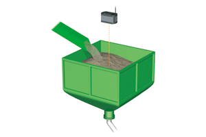 Grain or fine particles in tank are detected. Stable detection is ensured even with materials absorbing ultrasonic wave.